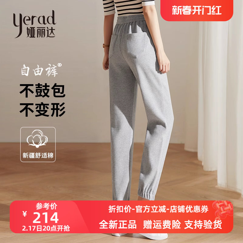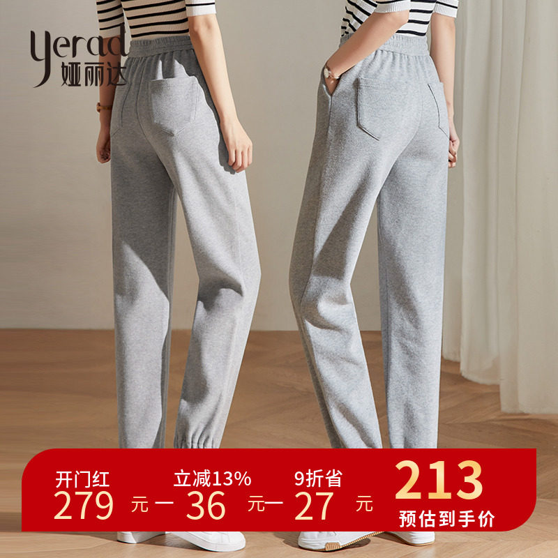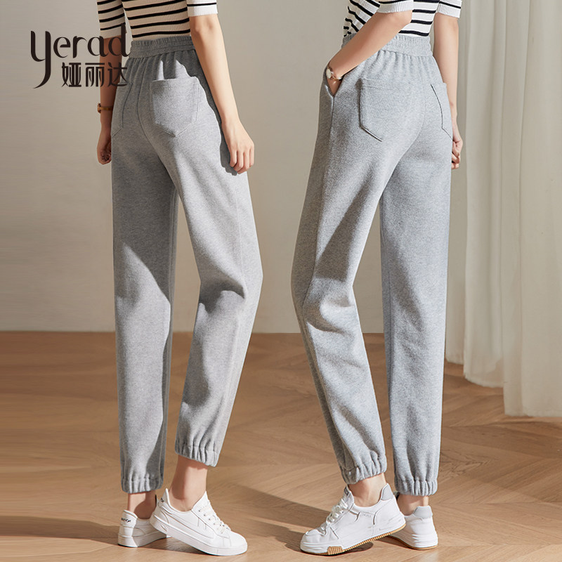 娅丽达女裤灰色运动裤女九分裤2023秋季新款休闲裤子高腰束脚卫裤