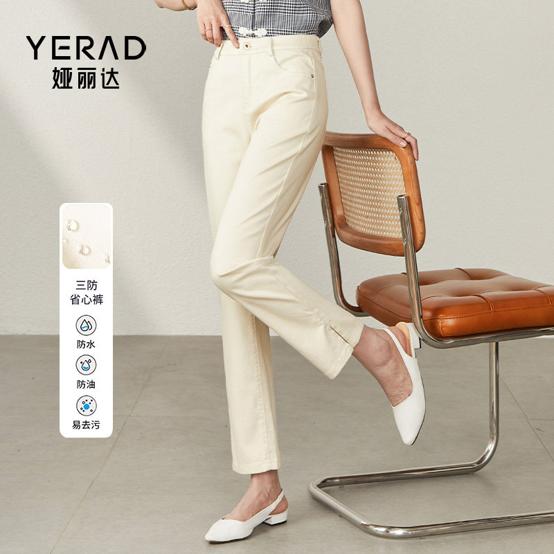 娅丽达女裤三防牛仔裤女2023春季新款休闲裤子佰搭九分米色直筒裤