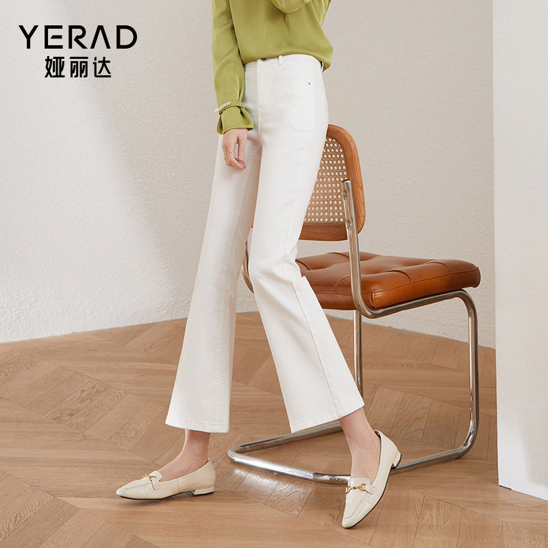 娅丽达微喇牛仔裤女修身显瘦抑菌裤子2023春季新款白色九分喇叭裤