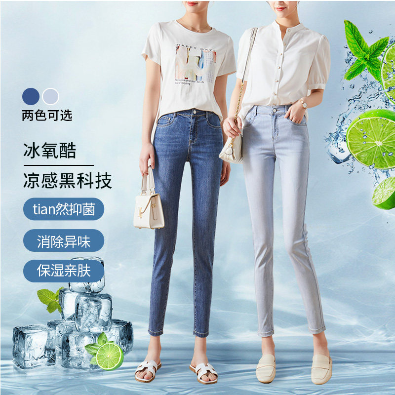 娅丽达女裤九分牛仔裤女修身铅笔裤2023年夏季新款高腰小脚裤薄款