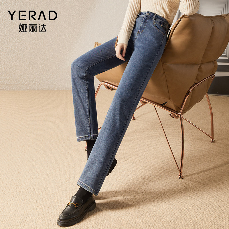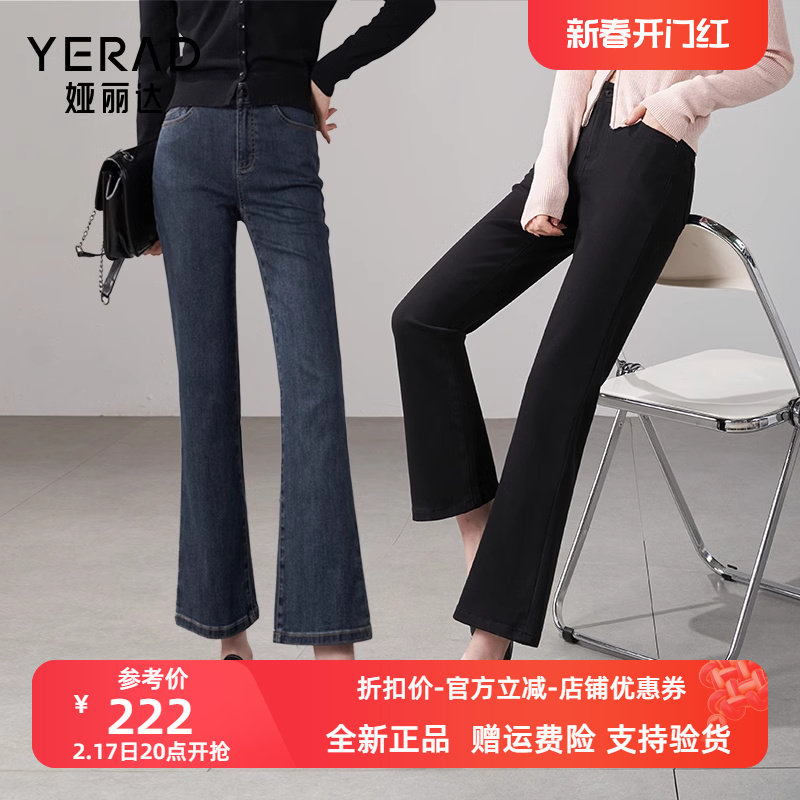 娅丽达加厚喇叭牛仔裤女宽松舒适大码女裤2022冬季新款九分微喇裤