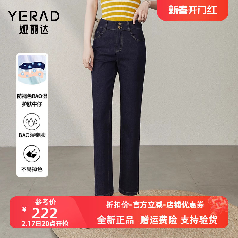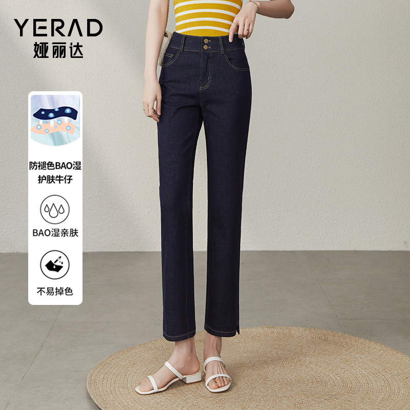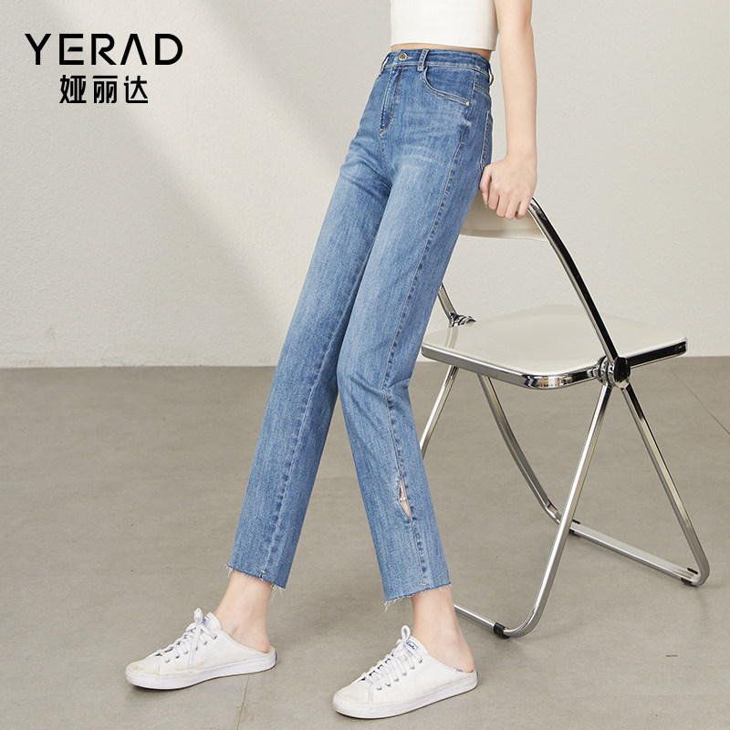 娅丽达正品女裤春夏季新款开叉直筒牛仔裤2023年大码小个子九分裤