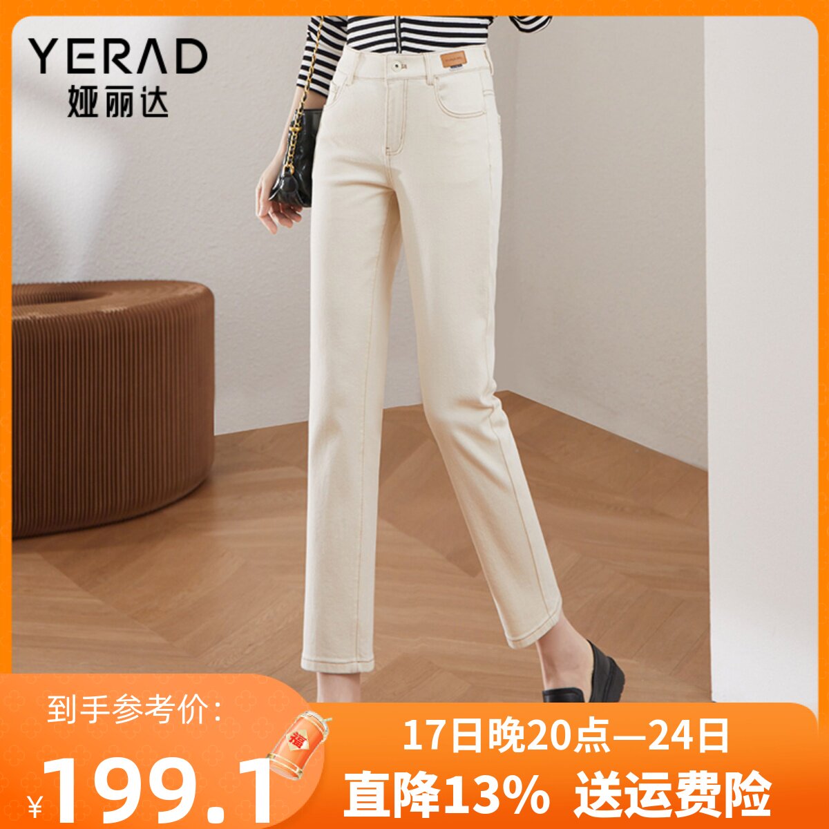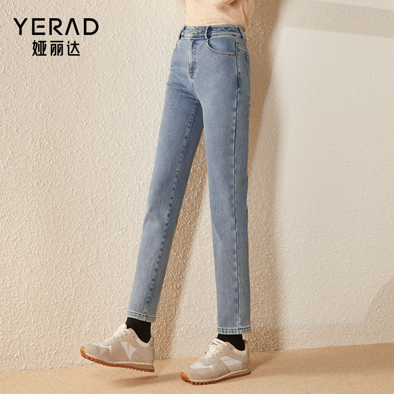 娅丽达女裤2023冬季新款加绒烟管裤小个子九分直筒裤女显瘦牛仔裤
