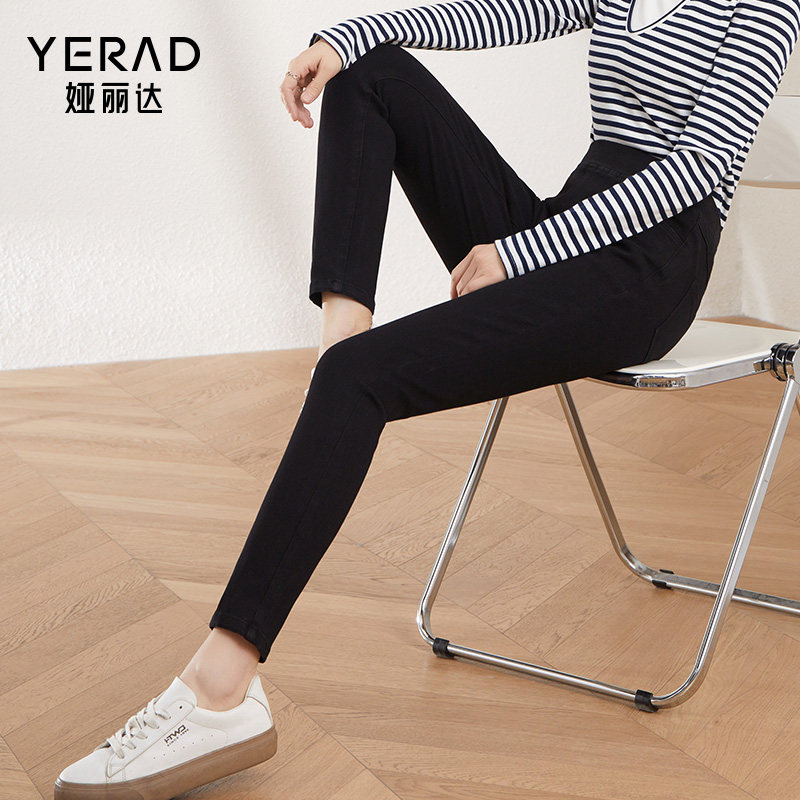 娅丽达黑色小脚打底牛仔裤女修身裤子2023春季新款松紧腰九分女裤