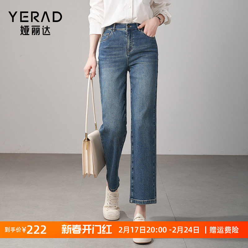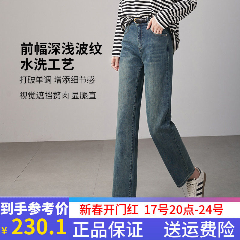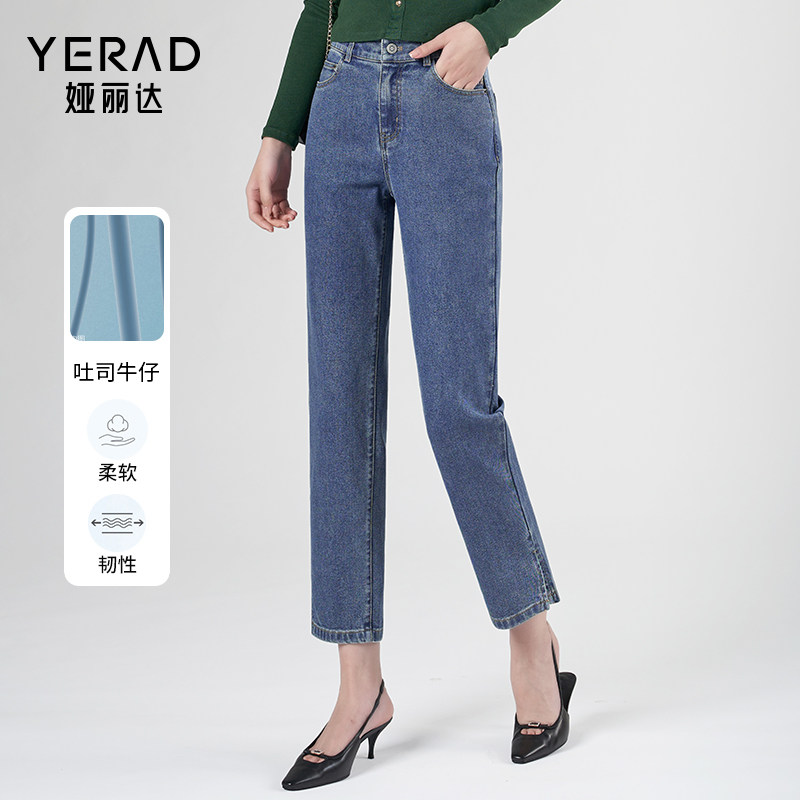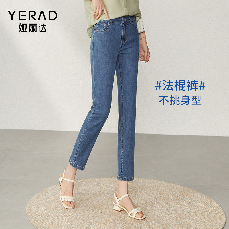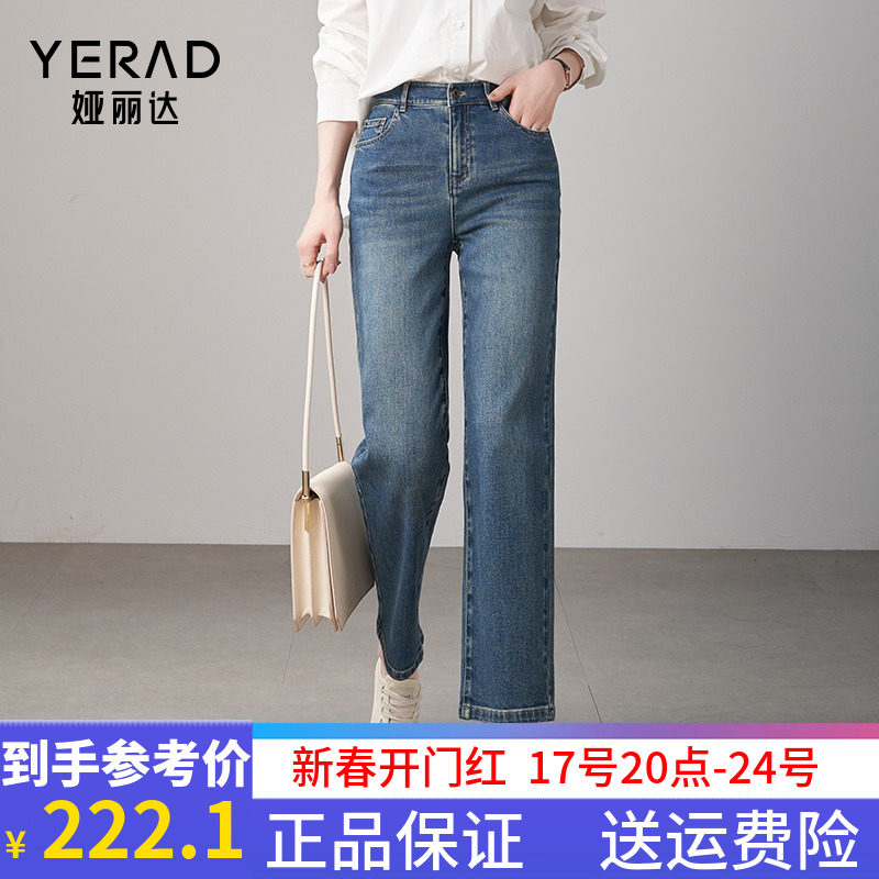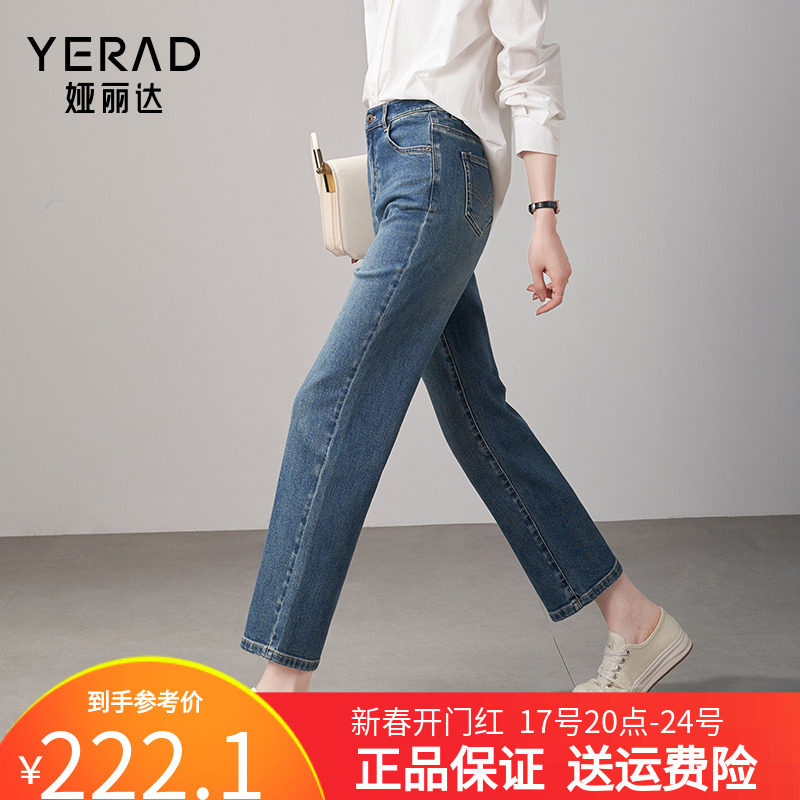 正品娅丽达2024年春季女装新款高腰九分法棍裤直筒牛仔裤DN1161
