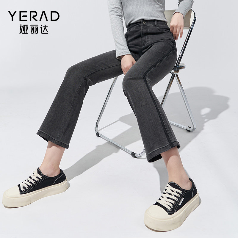 娅丽达女裤2023牛仔裤春季抗菌拉链微喇裤中腰九分裤灰色 DM1140