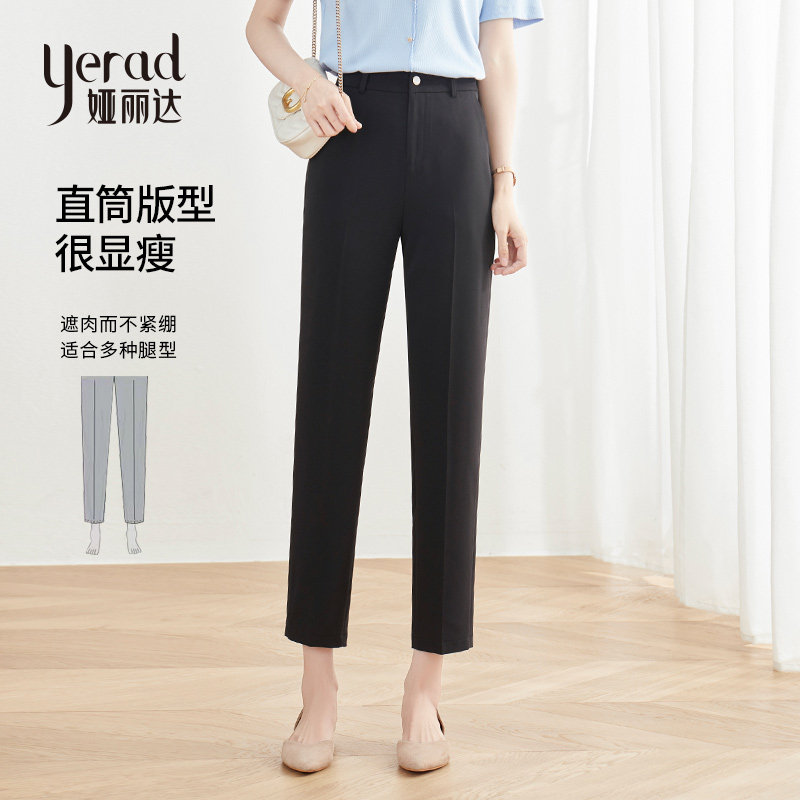 娅丽达女裤烟管直筒裤女西装裤2024春季新款黑色裤子高腰九分裤