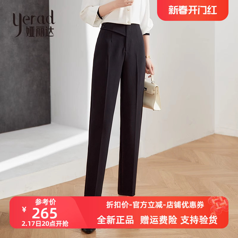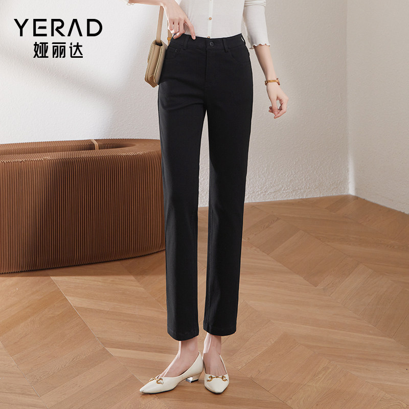 娅丽达女裤黑色直筒裤女小个子九分裤早秋新款休闲裤子高腰西装裤