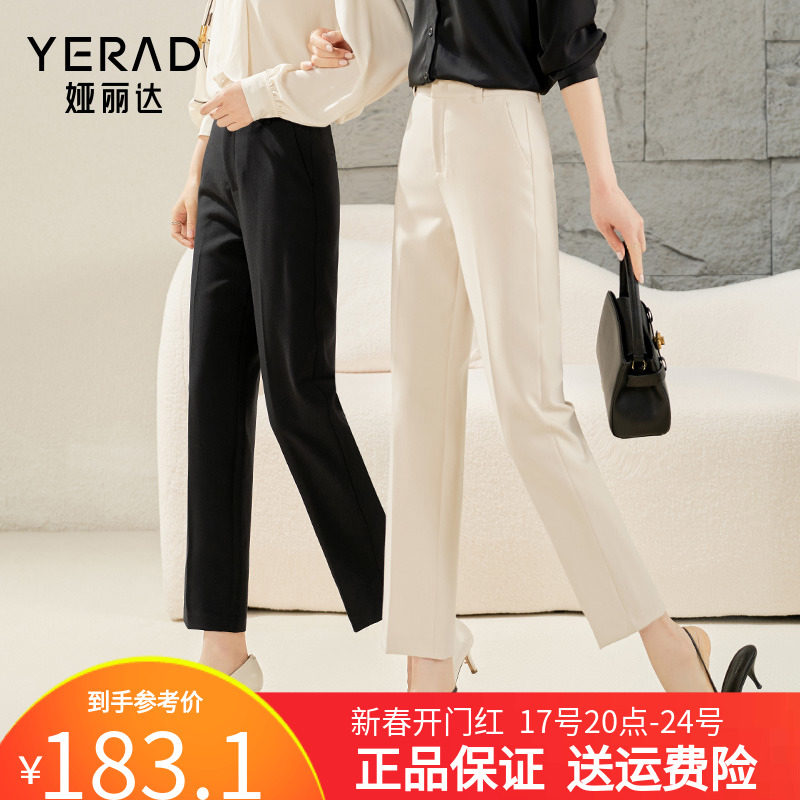 娅丽达女裤烟管直筒裤女西装裤2022秋季新款黑色裤子高腰九分裤