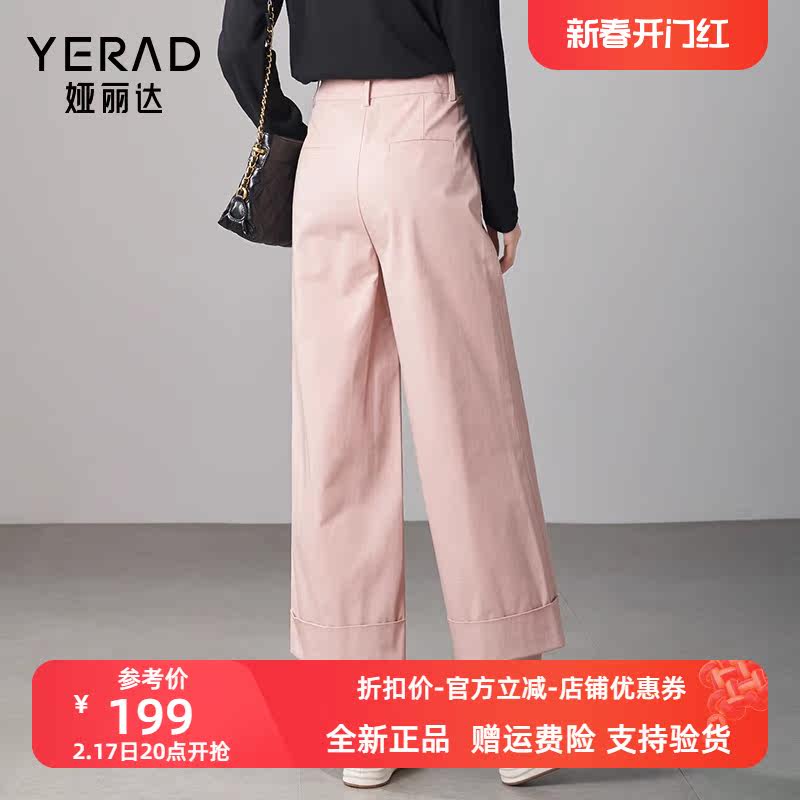 娅丽达女裤2023秋冬季新款加厚阔腿裤女休闲毛呢九分直筒西装裤子