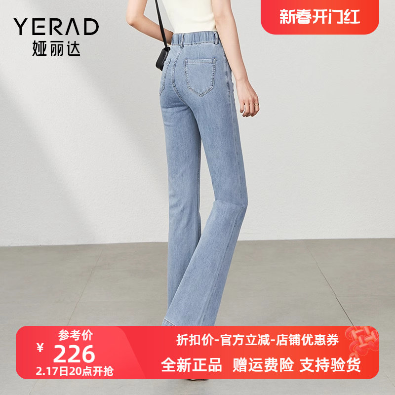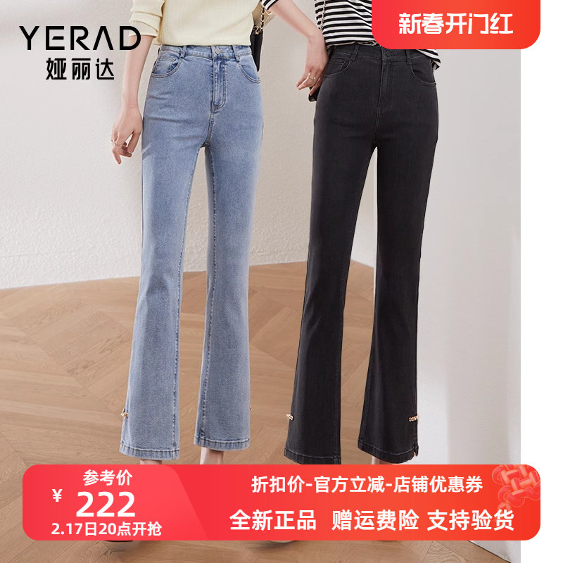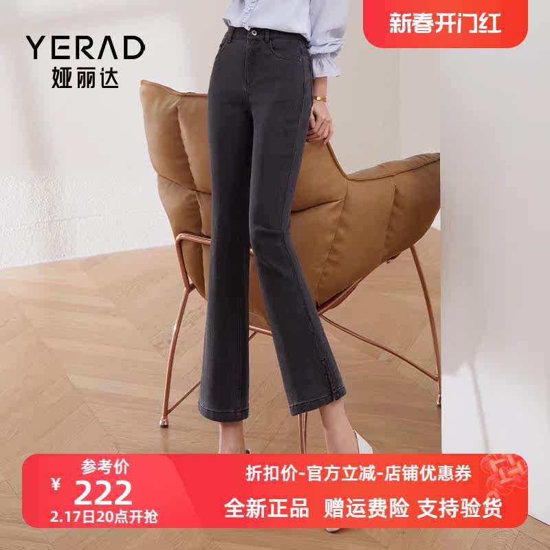 娅丽达喇叭牛仔裤女修身显瘦宽松女裤2023春季新款九分微喇裤子女