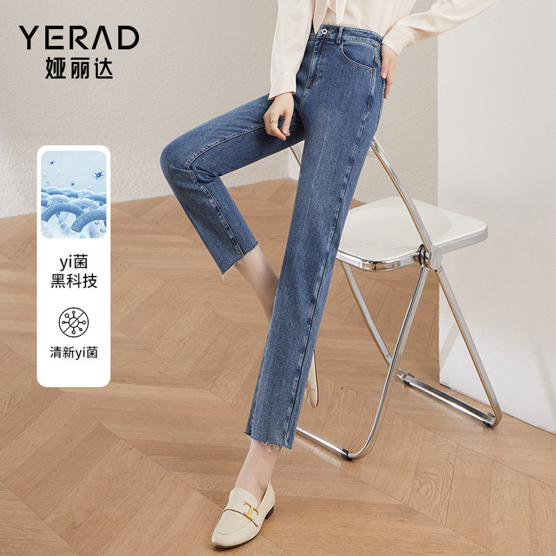 娅丽达小脚直筒牛仔裤女修身显瘦抑菌裤子2023春季新款显瘦九分裤