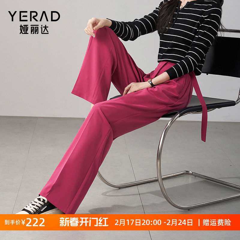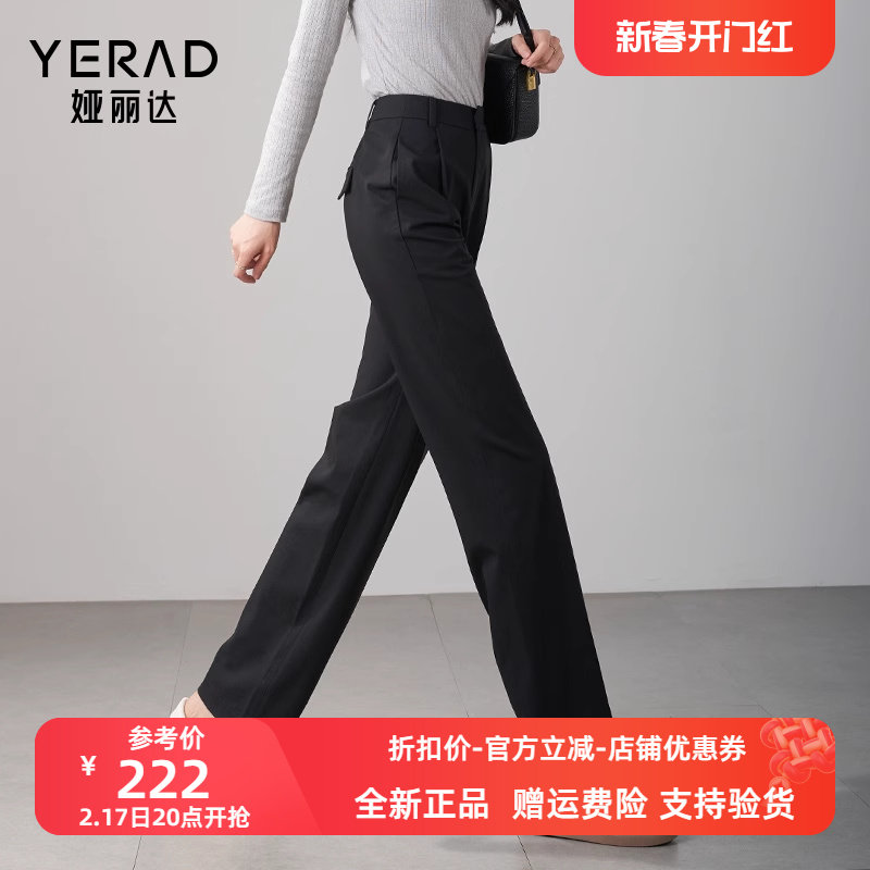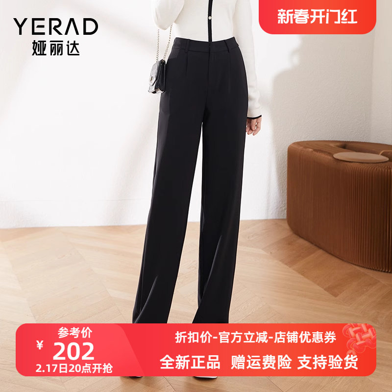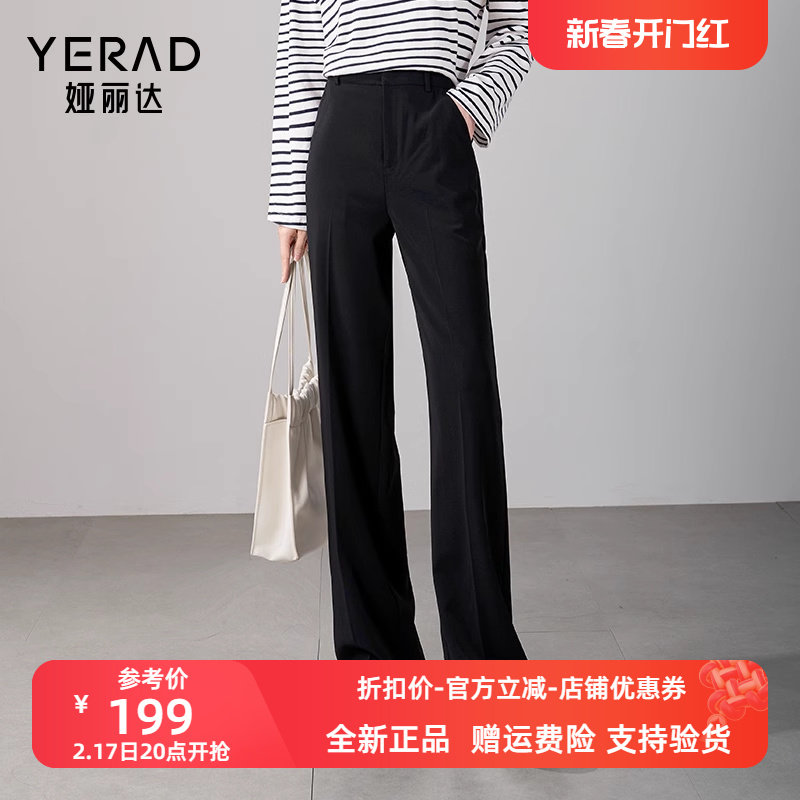 娅丽达女裤窄版阔腿裤女2024春季新款宽松休闲直筒长裤垂顺西装裤