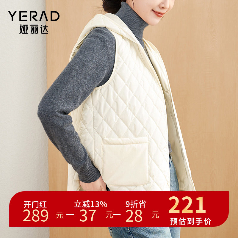 娅丽达连帽保暖马甲棉服外套女复古菱格2023冬季新款休闲坎肩背心