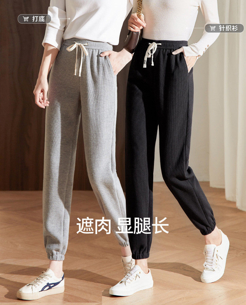 娅丽达女裤灰色运动裤女哈伦裤秋季新款裤子华夫格束脚卫裤休闲裤