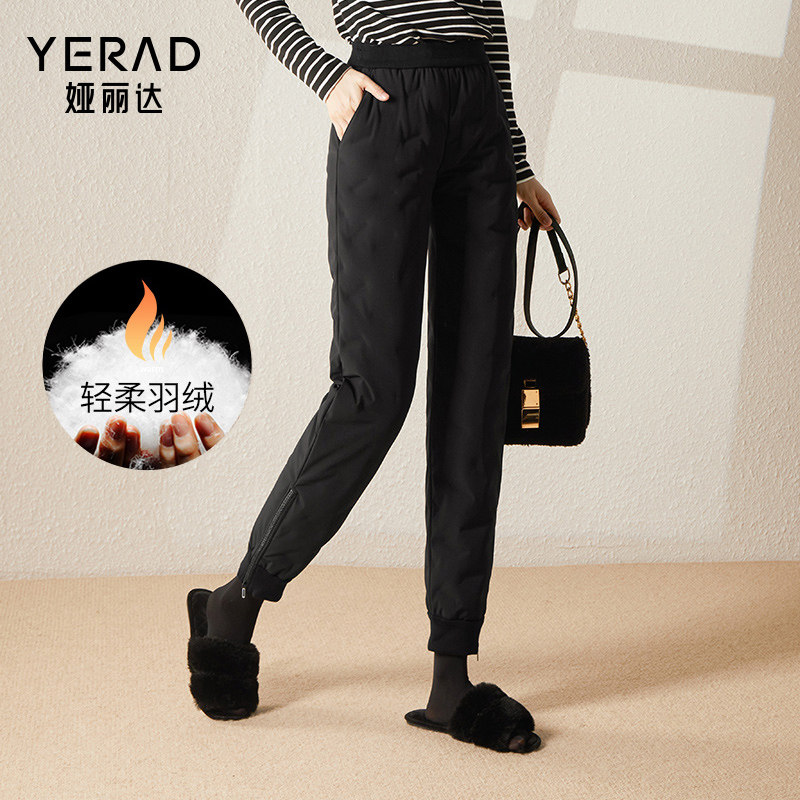 娅丽达冬季新款羽绒裤女外穿保暖黑色宽松休闲束脚拉链鸭绒棉裤