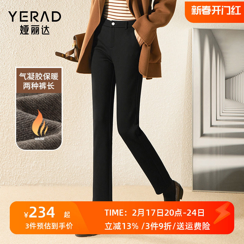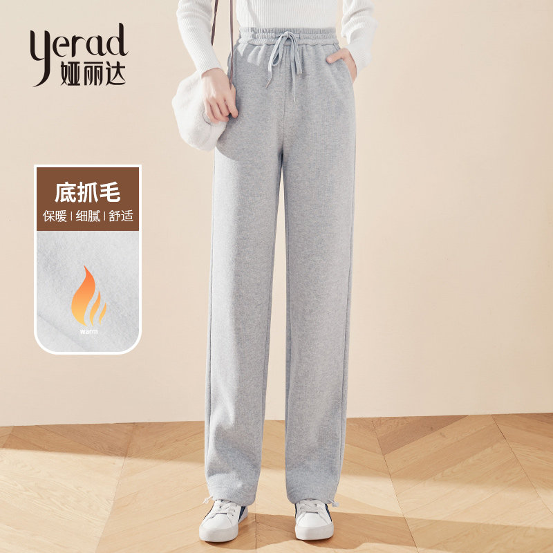 娅丽达女裤加厚高腰加绒直筒裤女休闲裤2023冬季新款长裤子保暖裤