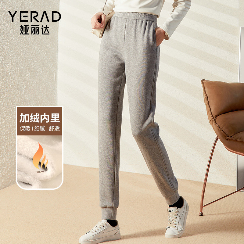 娅丽达保暖加绒卫裤女宽松冬季新款一体绒灰色加厚运动裤休闲裤子