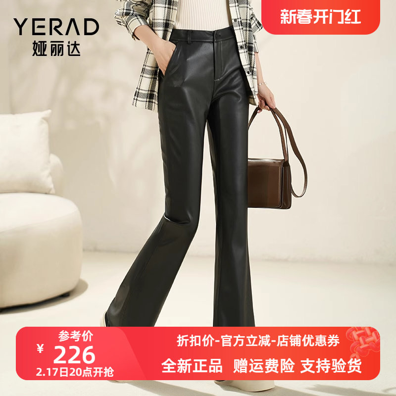 娅丽达喇叭裤女2023新款春秋季皮裤pu休闲裤子高腰女裤复古微喇裤