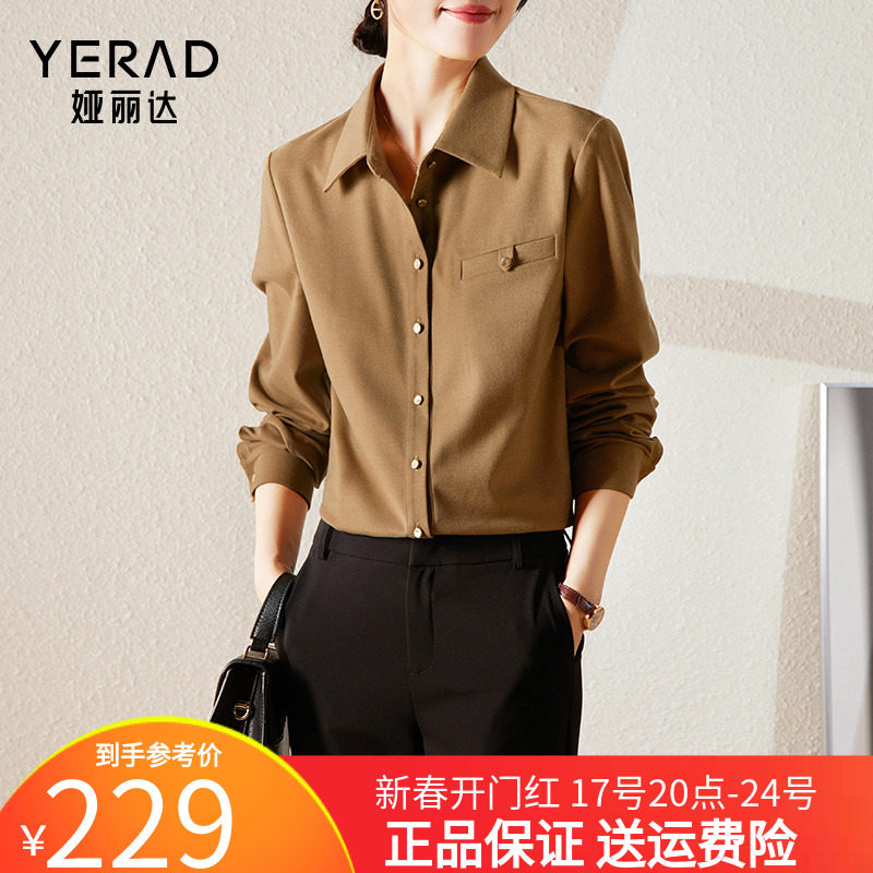 娅丽达衬衫上衣女2023秋冬新款复古磨毛叠穿女装棕色休闲长袖衬衣
