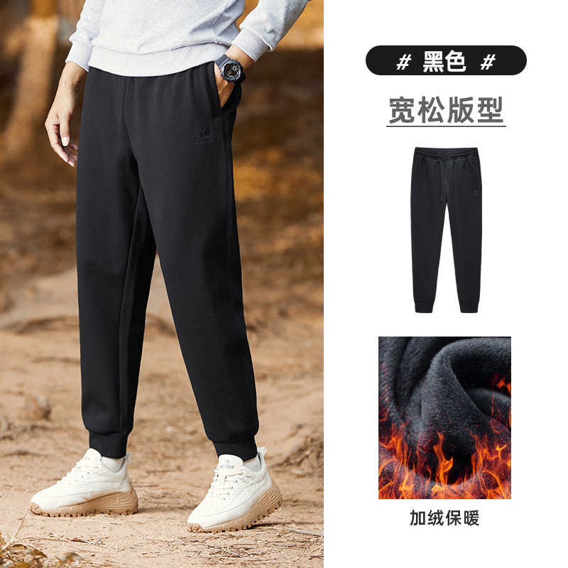 骆驼男装2022冬季新款加绒休闲裤防风保暖抽绳松紧束脚运动卫裤男