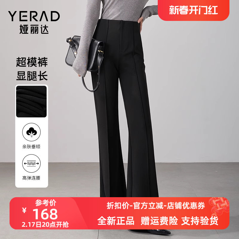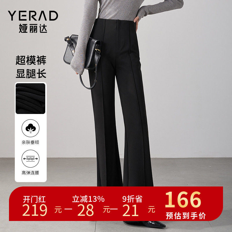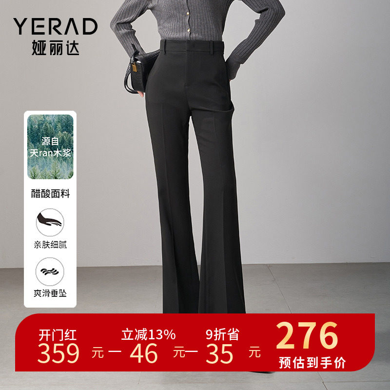 娅丽达显瘦喇叭裤女春2024新款休闲裤醋酸裤子高腰女裤黑色微喇裤