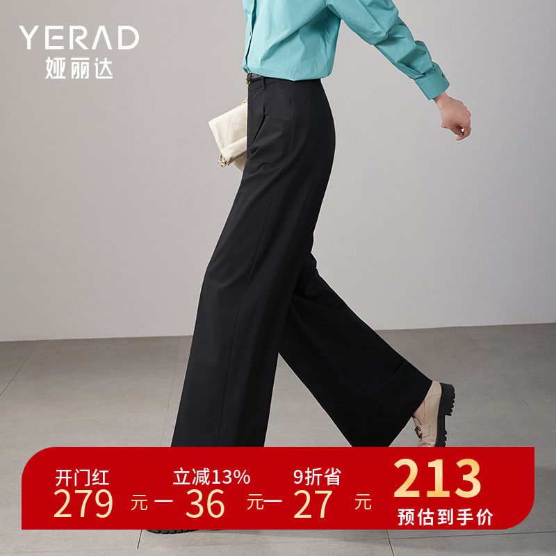 娅丽达女裤2023休闲裤中腰立体裁剪通勤简约阔腿裤长裤 DM1539