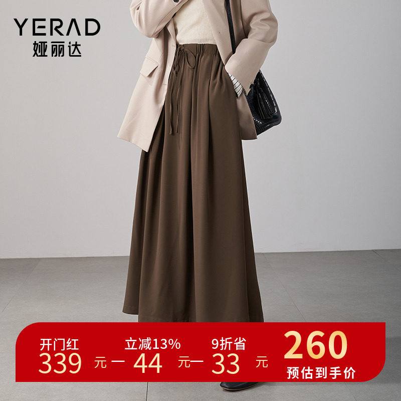 娅丽达通勤松紧高腰气质半身裙女2024春季新款长裙休闲咖色伞裙