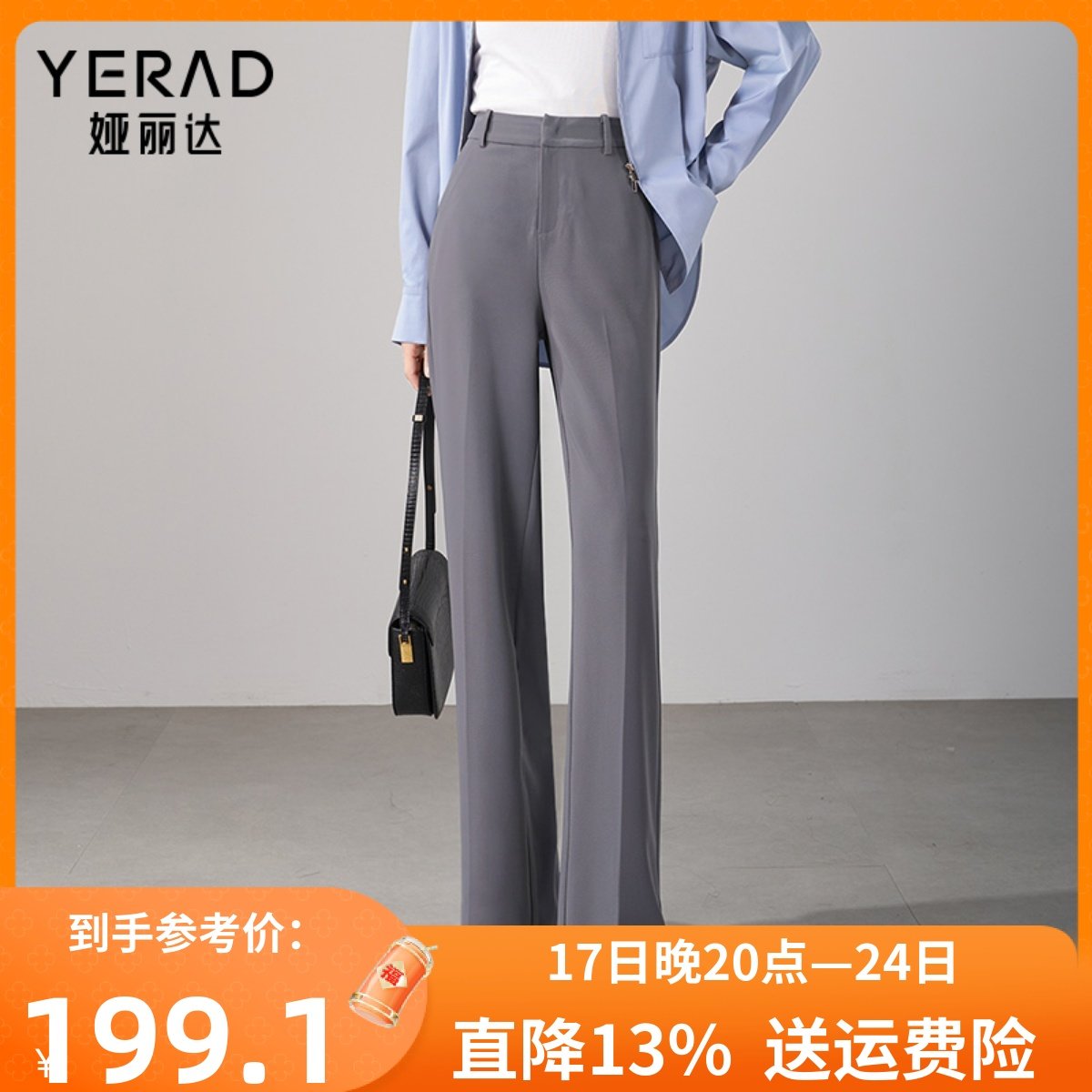 娅丽达灰色西裤窄版阔腿裤女春秋裤子2024新款休闲裤直筒裤西装裤