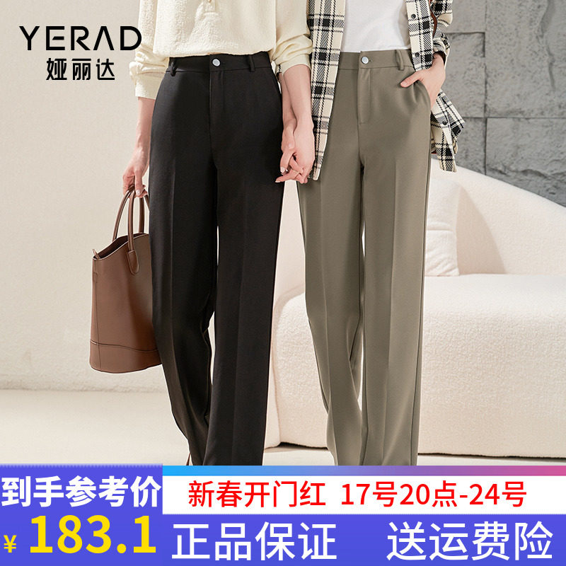 娅丽达女裤2024春秋新款窄版直筒裤女西裤宽松休闲阔腿西装长裤子