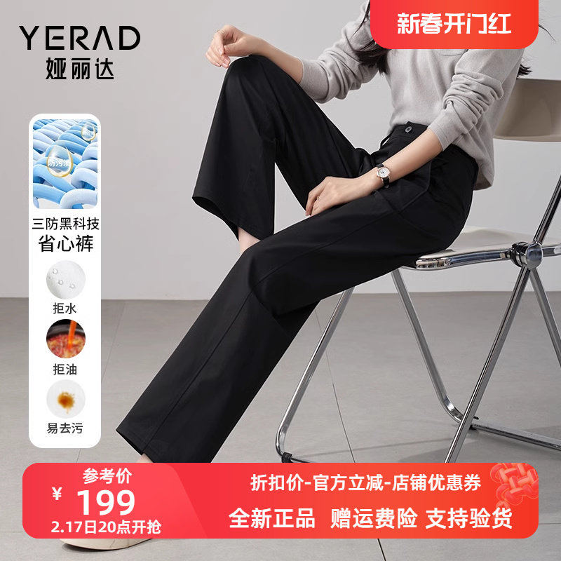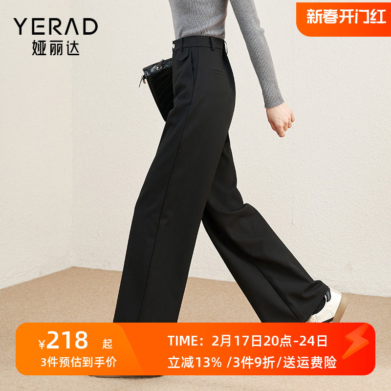 娅丽达西装裤窄版阔腿裤女裤春季西裤2024新款休闲裤子黑色直筒裤