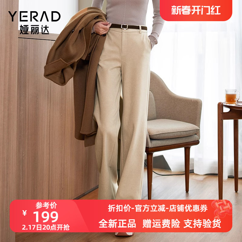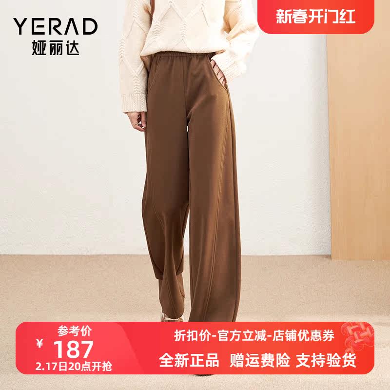 娅丽达女裤2023休闲裤简约通勤针织布加厚阔腿裤长裤中腰 DL4013