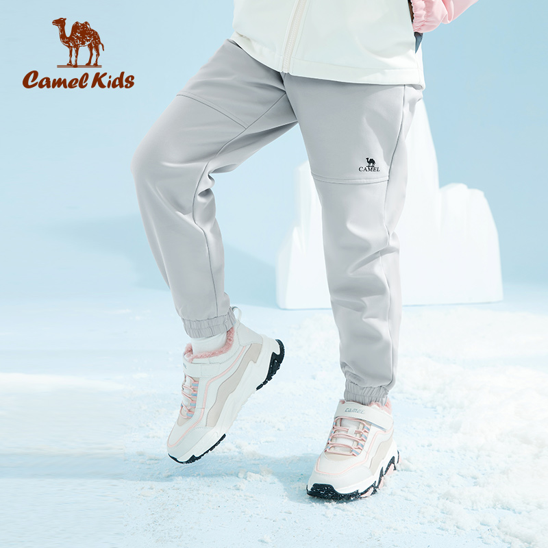 小骆驼软壳裤2022春秋新款男童防风舒适户外裤儿童女休闲抓绒长裤