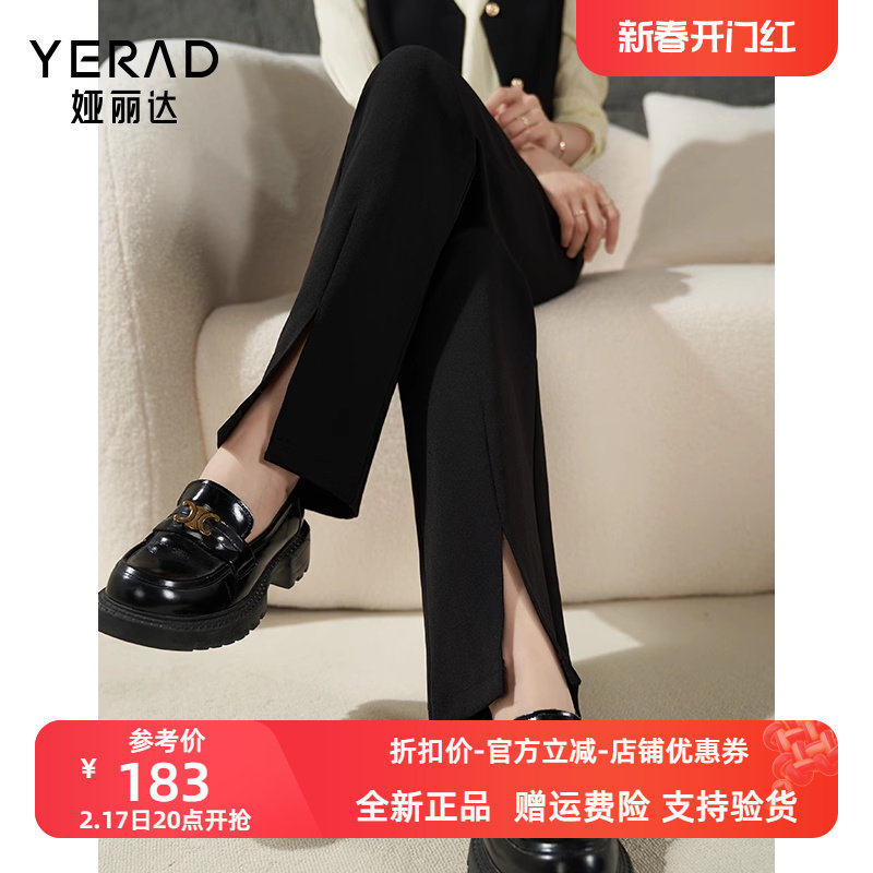 娅丽达开叉窄版阔腿裤女2023秋季新款西装裤子休闲西裤黑色直筒裤