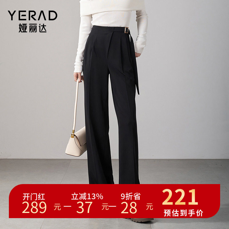 正品娅丽达2024年春季女装新款不对称系带休闲直筒裤西装裤DN1528