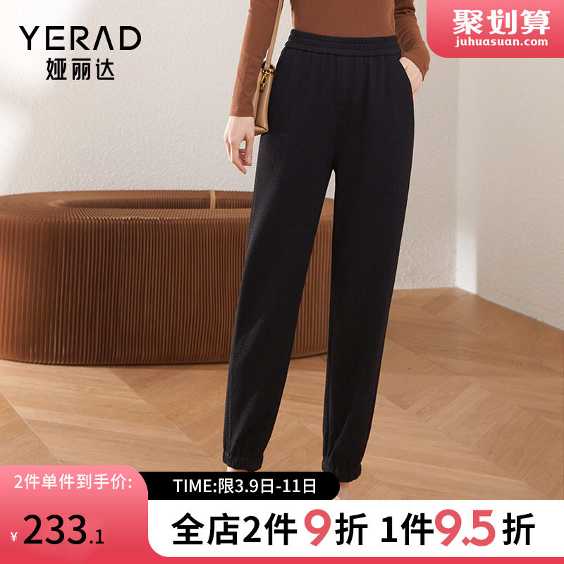 正品娅丽达2024年春季女装新款松紧腰休闲开叉直筒运动卫裤DN1011