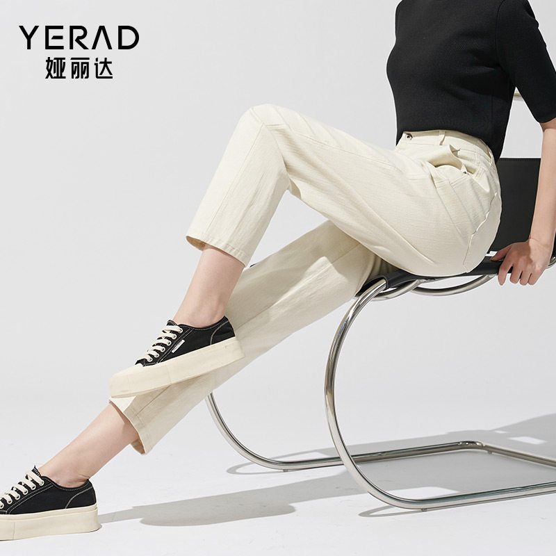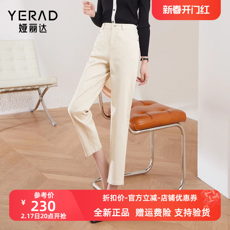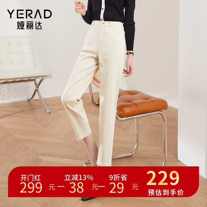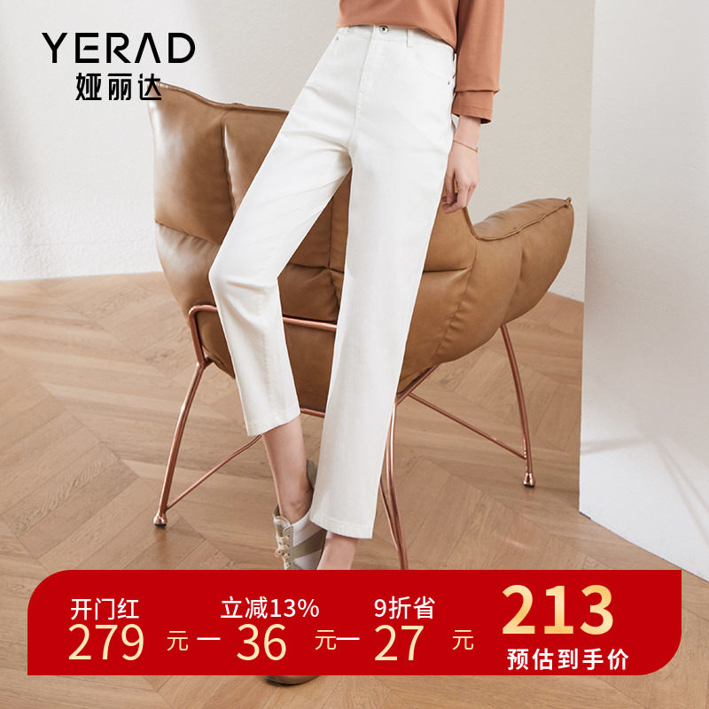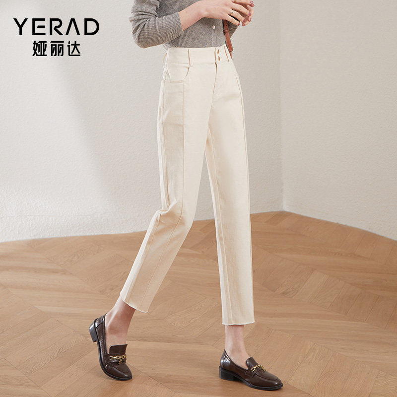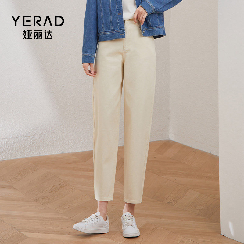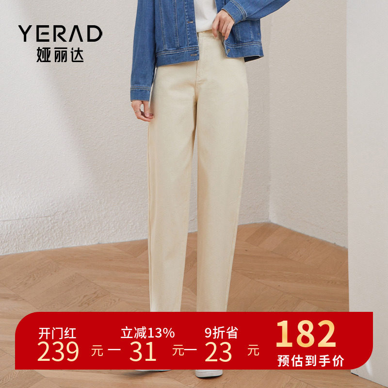 娅丽达女裤米白色牛仔裤女九分老爹裤2022秋季新款裤子高腰哈伦裤