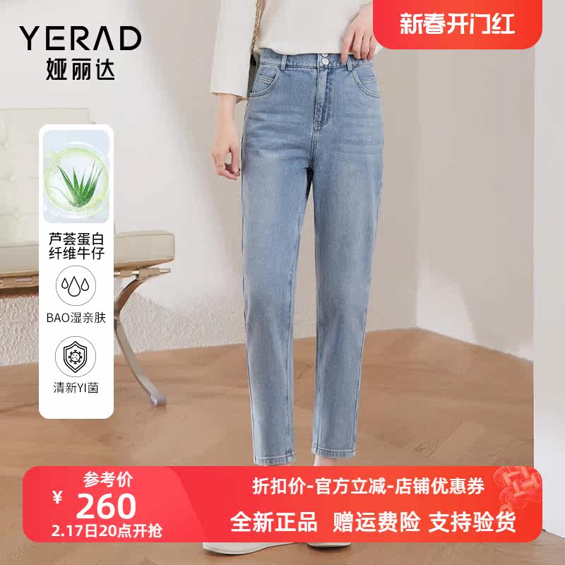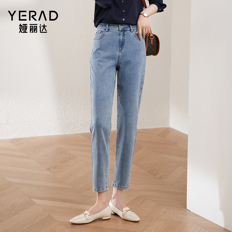 娅丽达哈伦牛仔裤女宽松显瘦不易掉色裤子2023春季新款小个子女裤