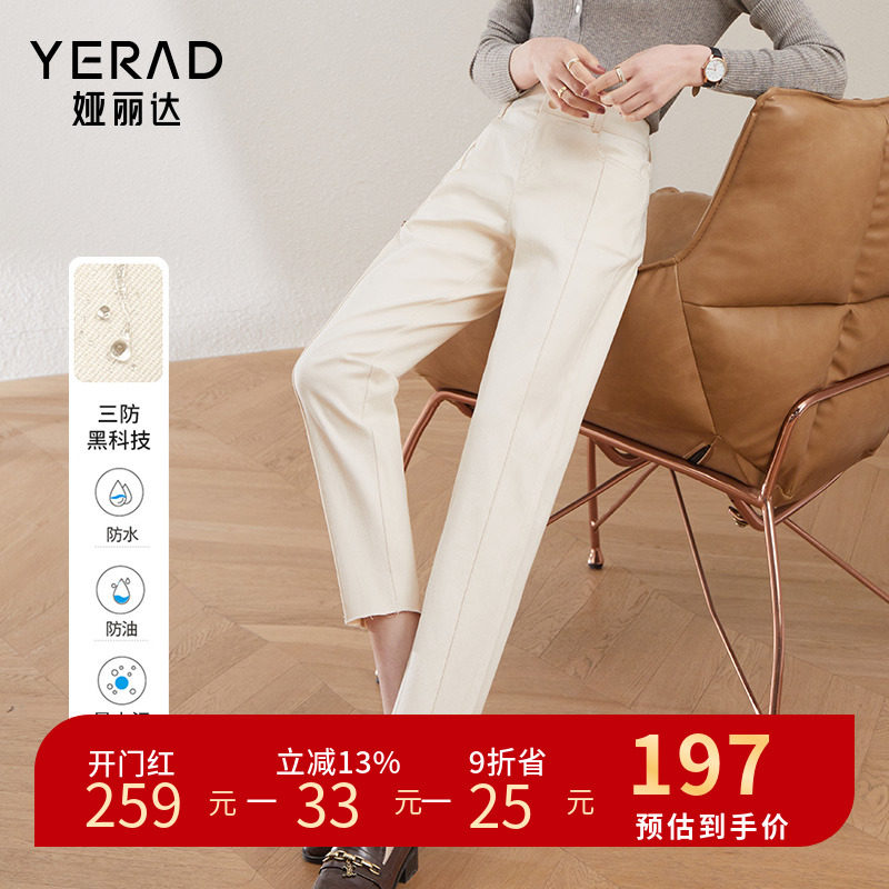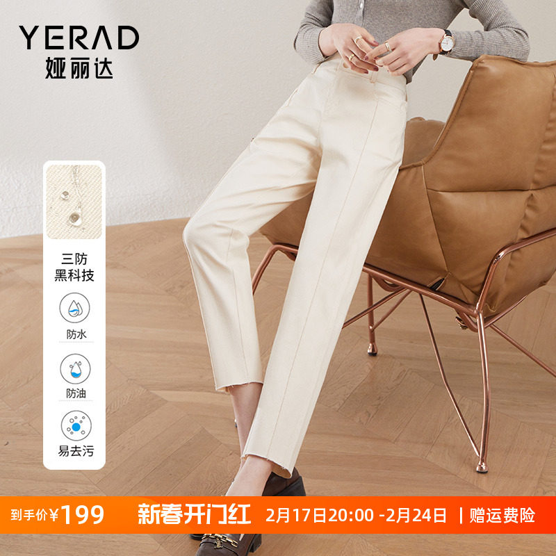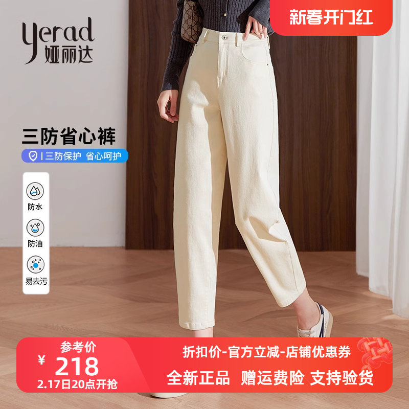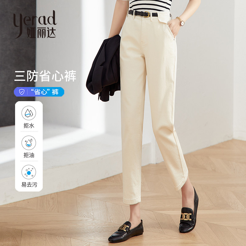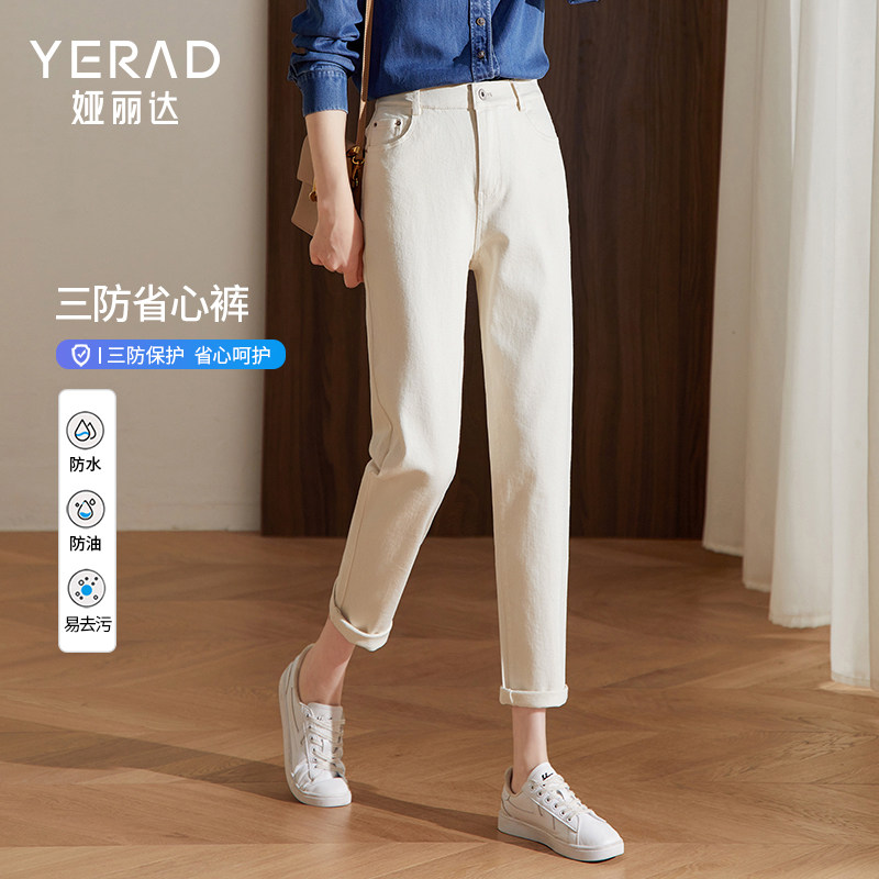 娅丽达三防牛仔裤女老爹裤2023春季新款女裤黑科技裤子米色哈伦裤
