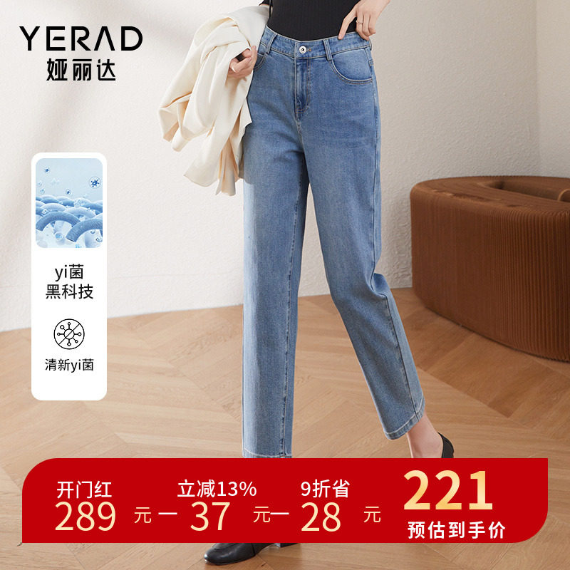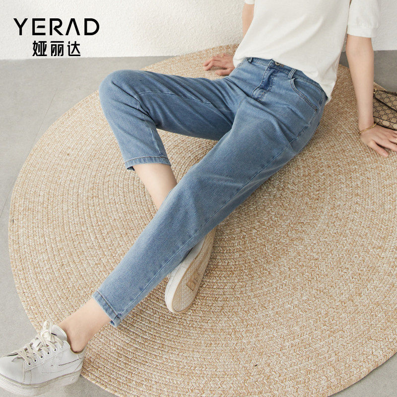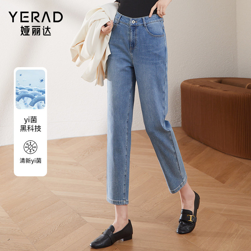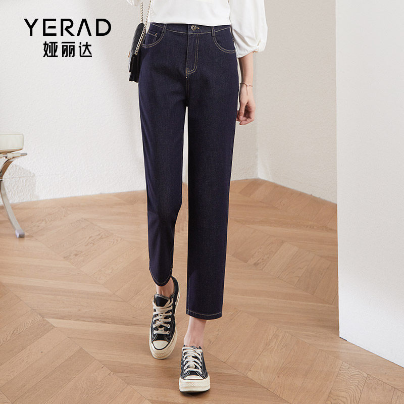 娅丽达女裤哈伦牛仔裤女九分裤秋季新款裤子高腰宽松小个子直筒裤