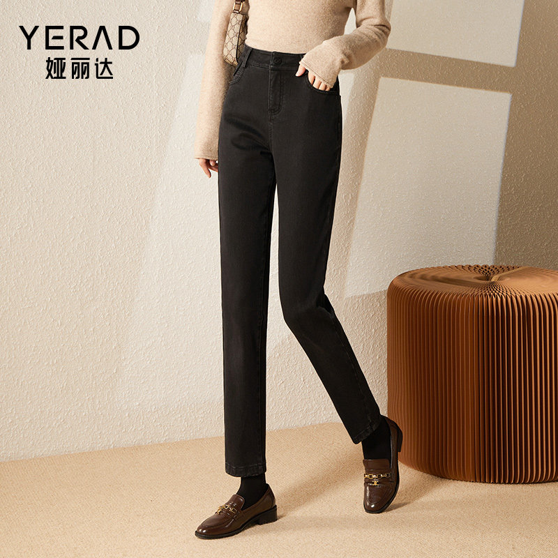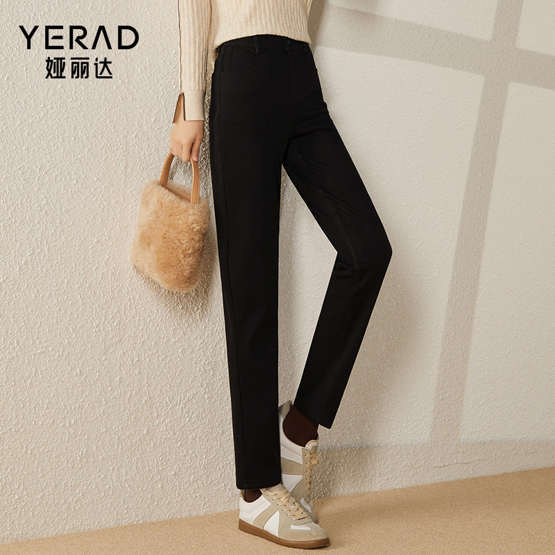 娅丽达冬季女裤加绒哈伦裤小个子老爹牛仔裤女2022年新款黑色裤子