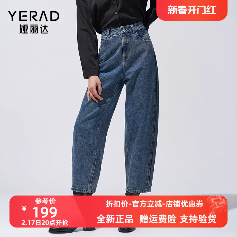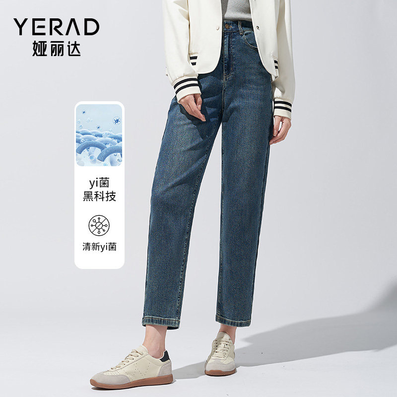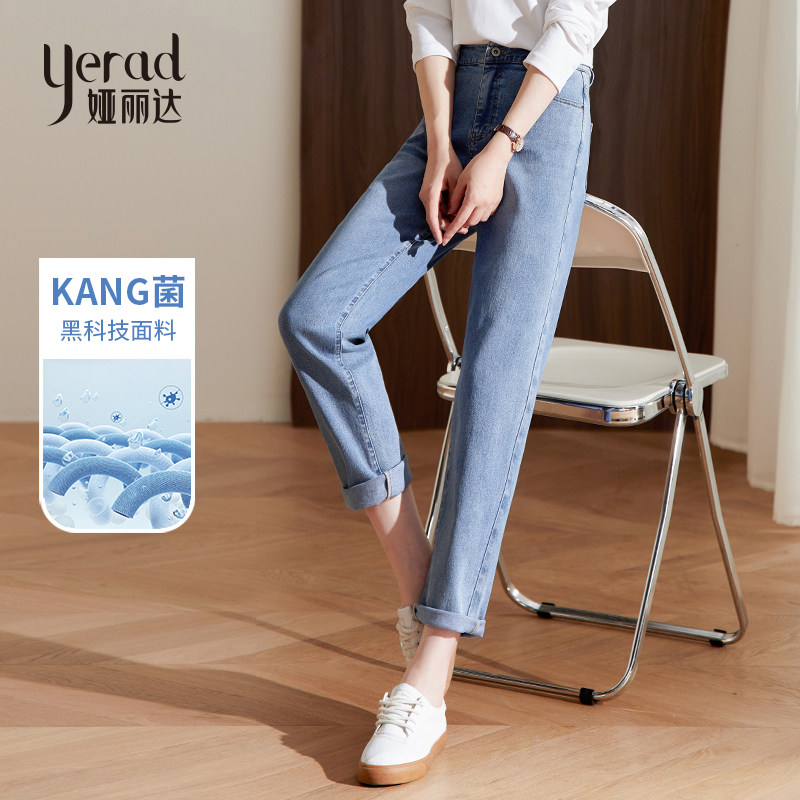 娅丽达抑菌哈伦裤宽松显瘦牛仔裤女2023秋季新品梨型身材老爹裤子