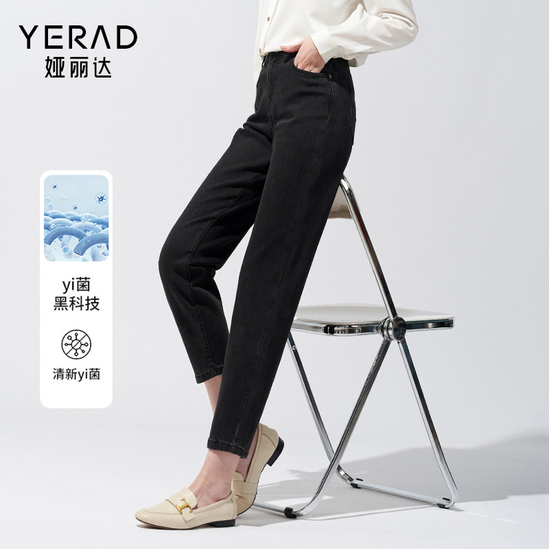 娅丽达女裤2023牛仔裤防污哈伦裤秋季中腰九分裤新品 DL3449