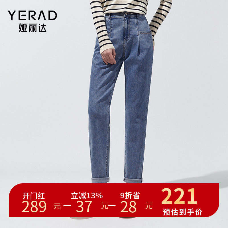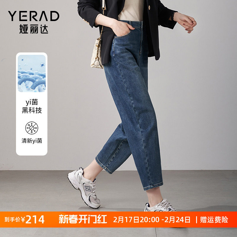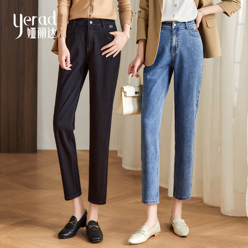 娅丽达女裤哈伦牛仔裤女老爹裤2022秋冬新款裤子高腰小个子九分裤