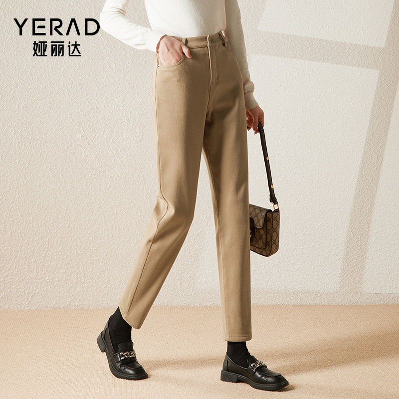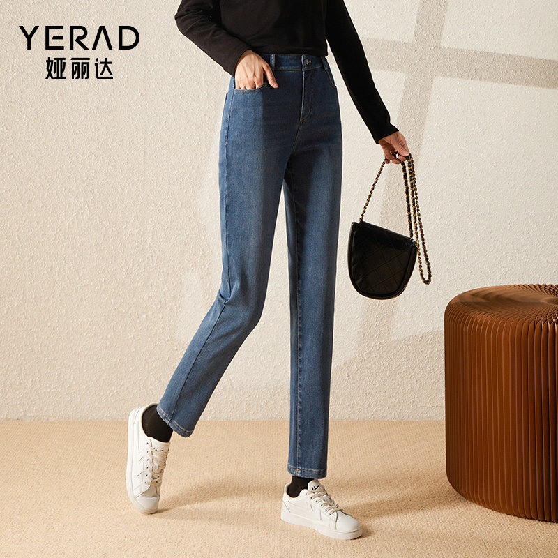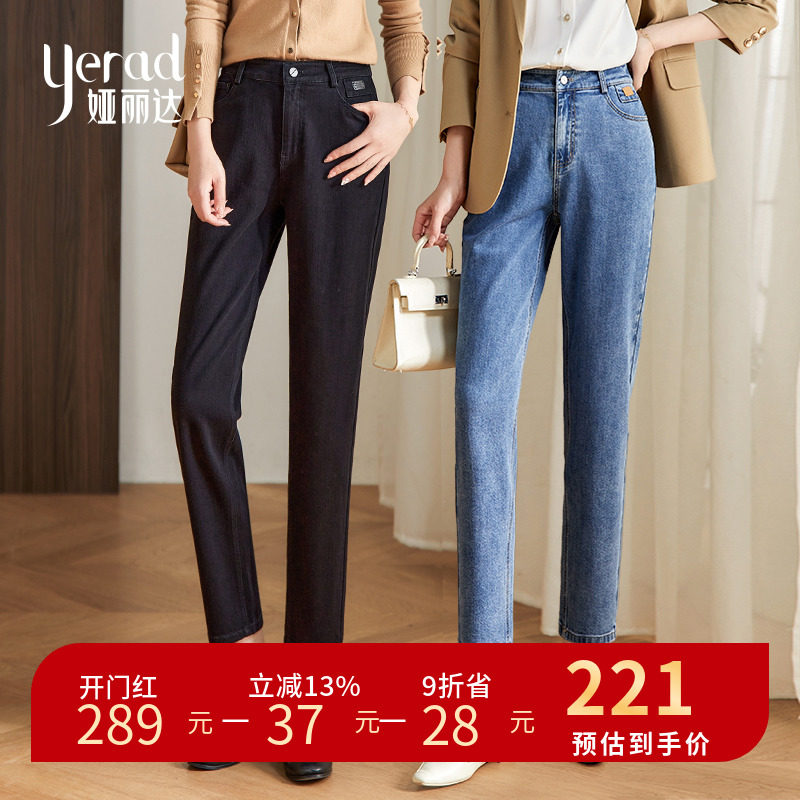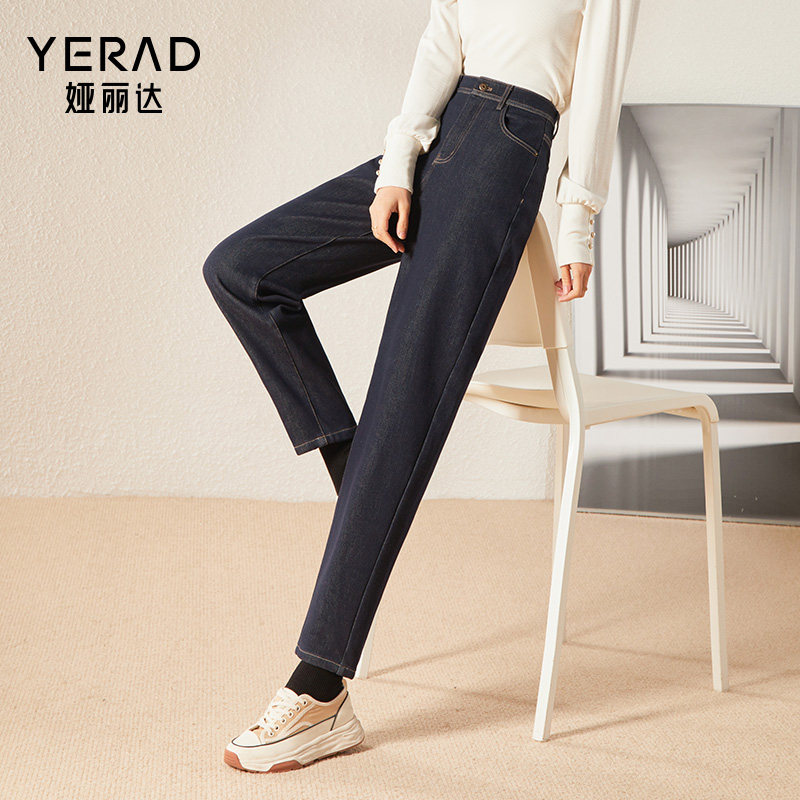 娅丽达女裤加绒哈伦牛仔裤2022新款爆款休闲裤子女秋冬高腰老爹裤