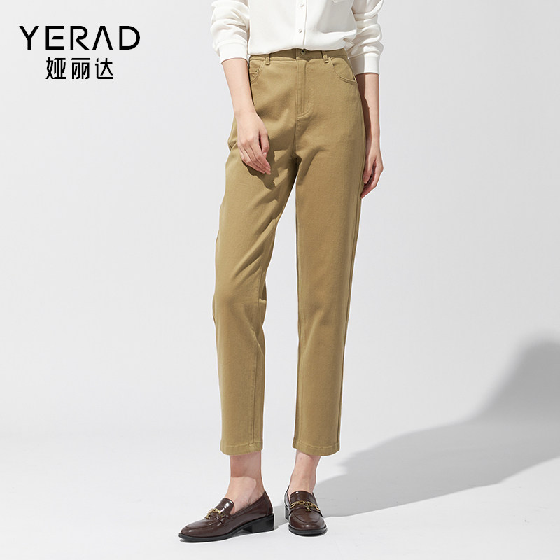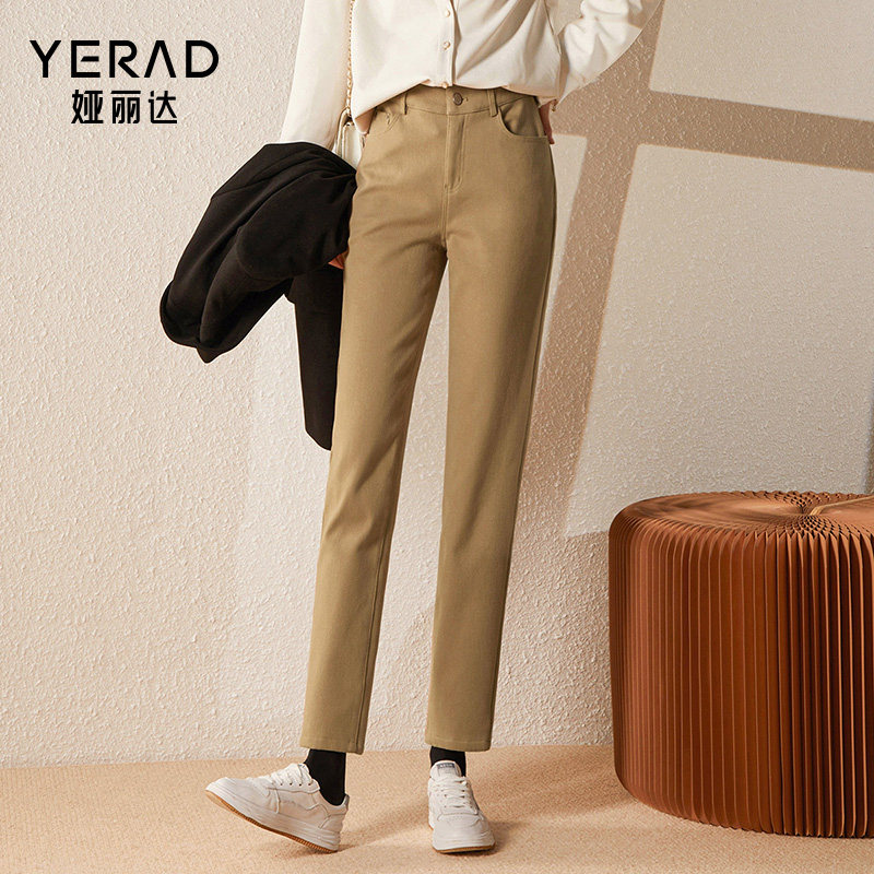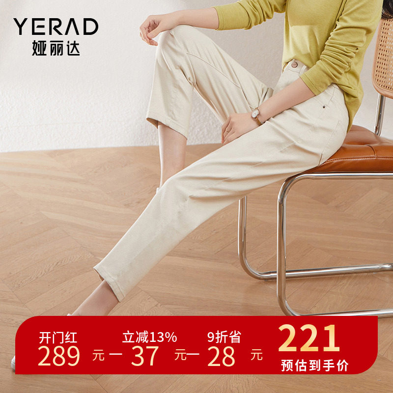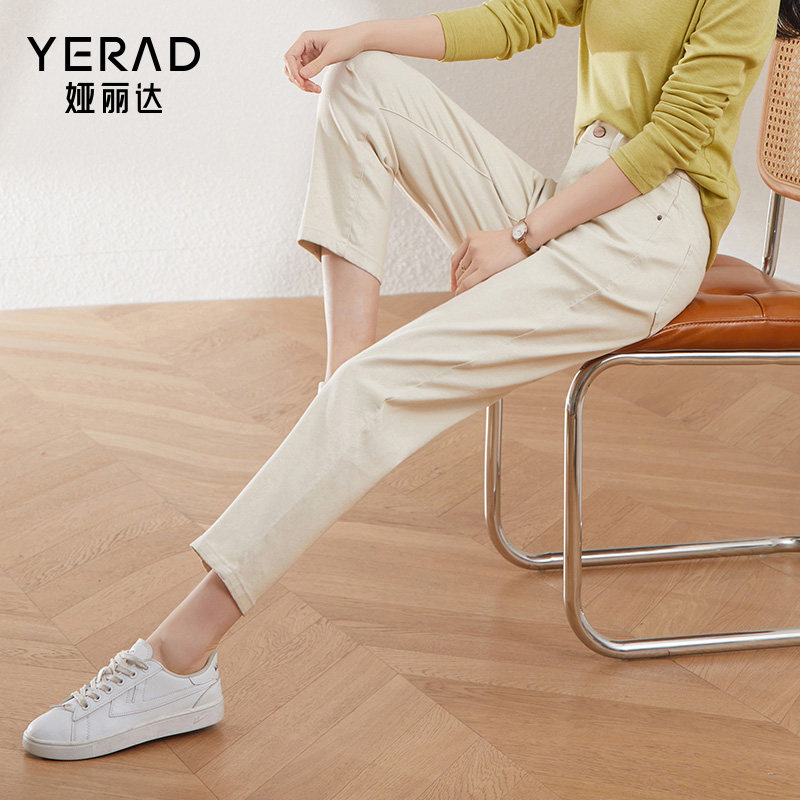娅丽达新款镰刀裤女2023秋季裤子水洗棉女裤显瘦哈伦裤米色牛仔裤