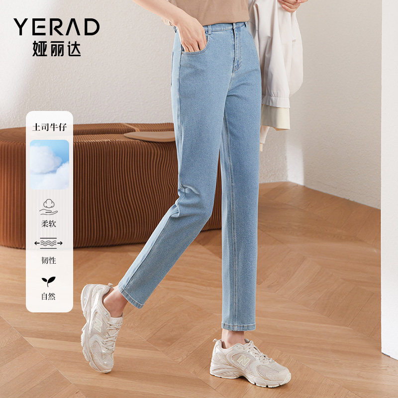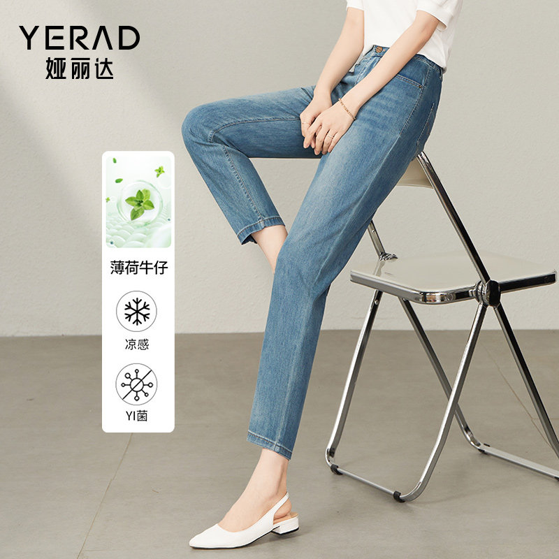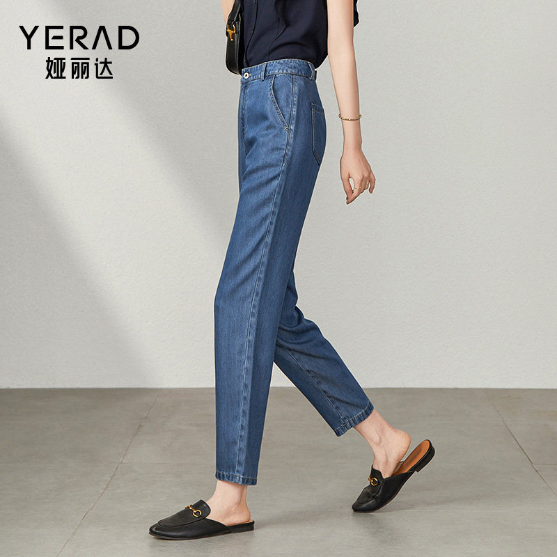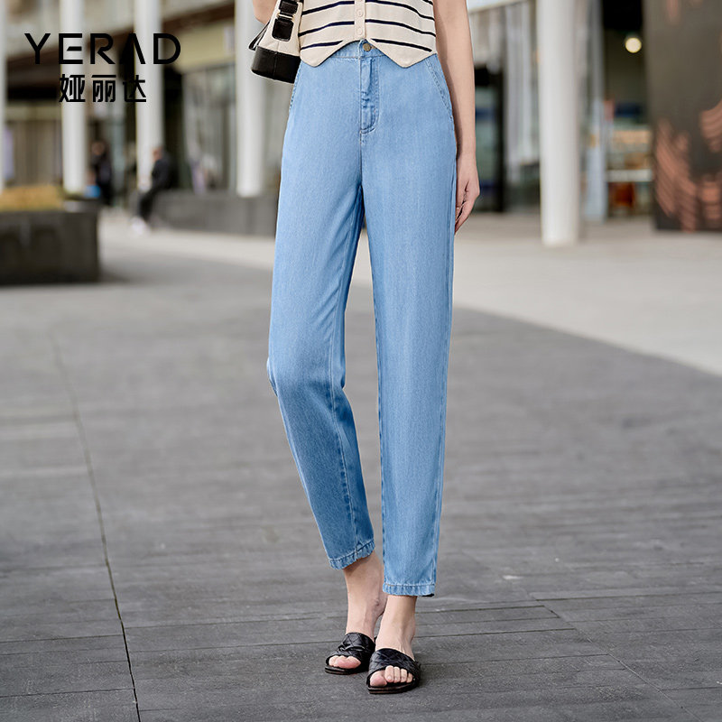 娅丽达天丝哈伦牛仔裤女轻薄顺滑裤子2023夏季新款修身显瘦九分裤