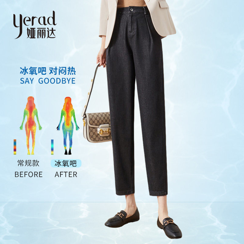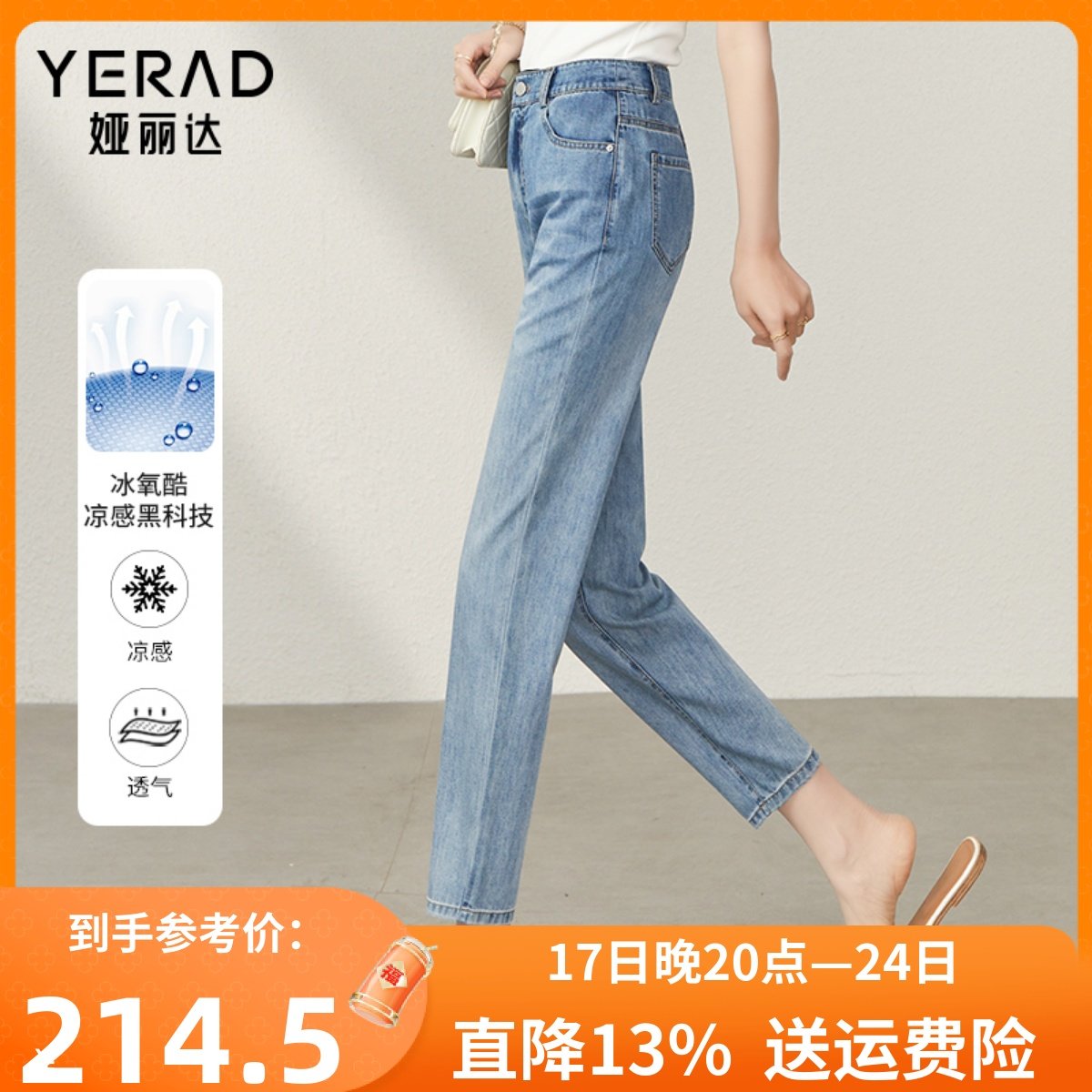 娅丽达女裤凉感牛仔裤女小个子九分哈伦裤2023夏季新款宽松老爹裤