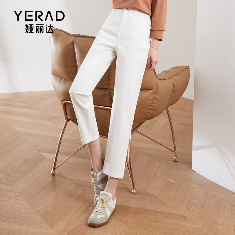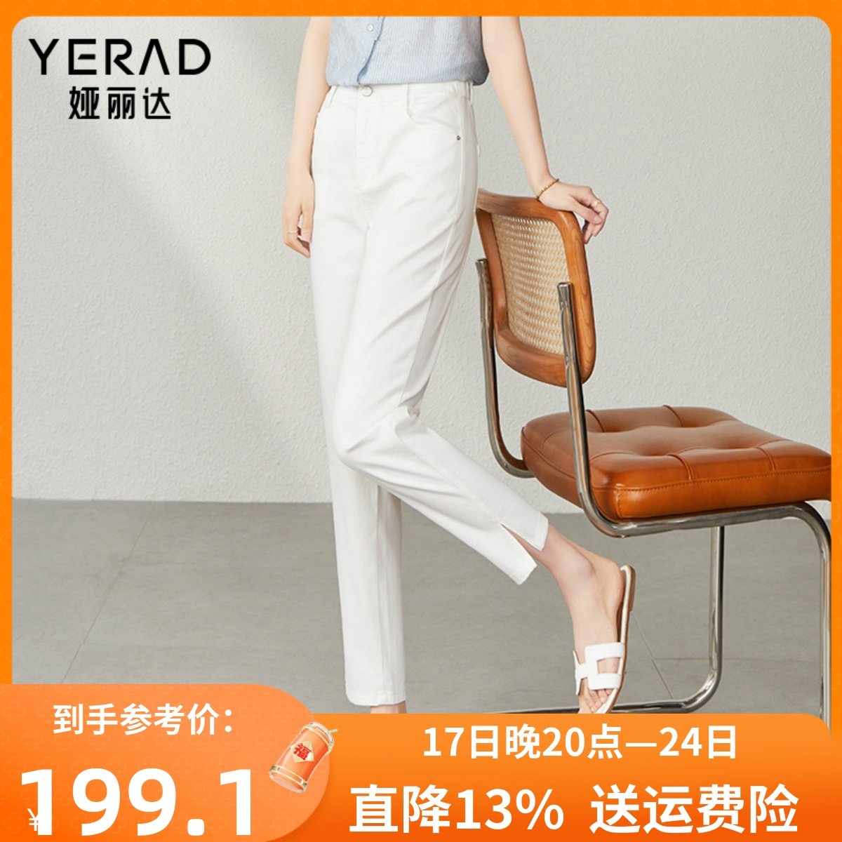 娅丽达女裤2023牛仔裤防污高腰拉链哈伦裤九分裤春季白色 DM1241