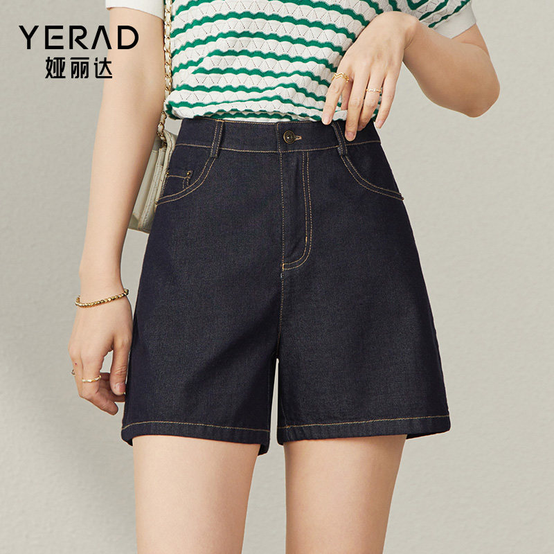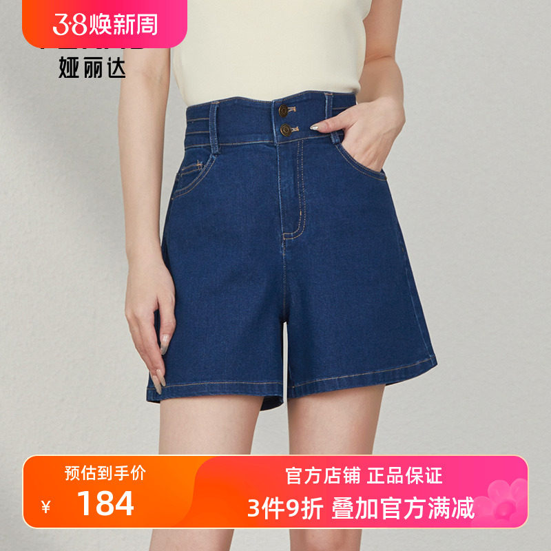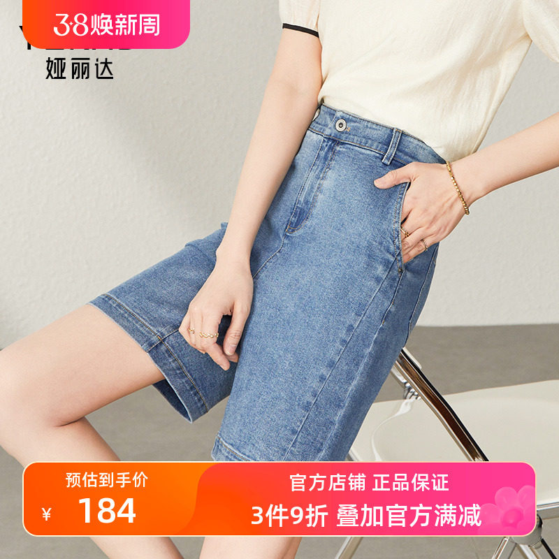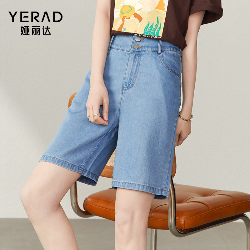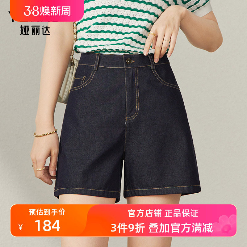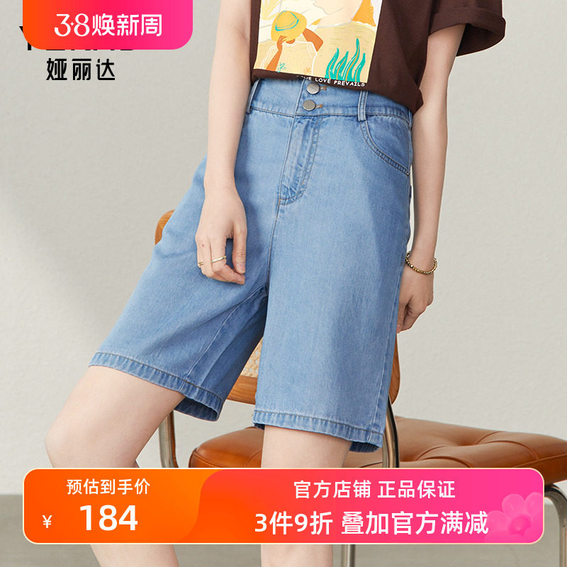 娅丽达天丝牛仔短裤女2022年夏季新款a字高腰宽松冰丝阔腿五分裤
